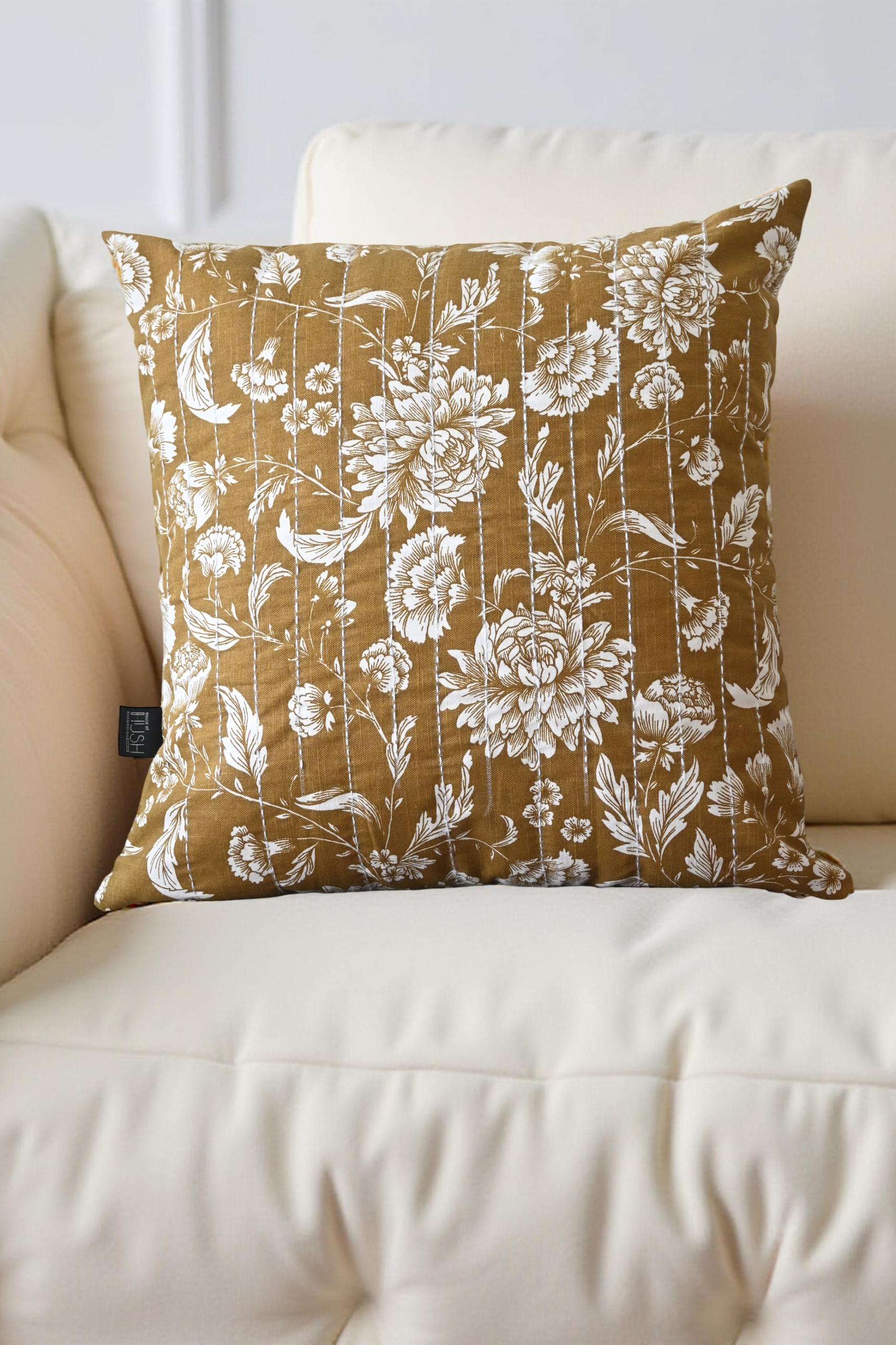 The delicate floral motifs, paired with subtle stitched detailing, add depth and texture, making this cushion cover a perfect accent for sofas, armchairs, and cozy corners. Its warm tone blends effortlessly with neutral interiors, wooden furniture, and soft furnishings, creating a calm and inviting atmosphere.