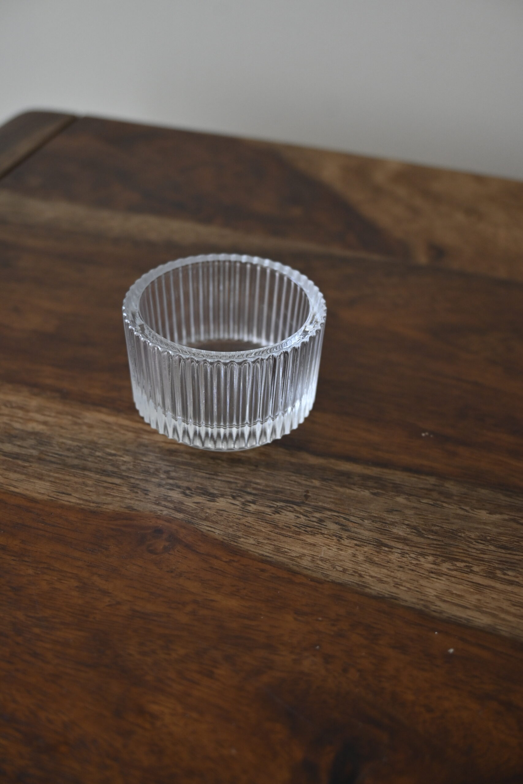 Bring a soft, ambient glow to your space with this elegant tealight holder crafted in clear glass. Designed with subtle vertical ridges, it beautifully catches and reflects candlelight, creating a warm and inviting atmosphere without overpowering your décor.