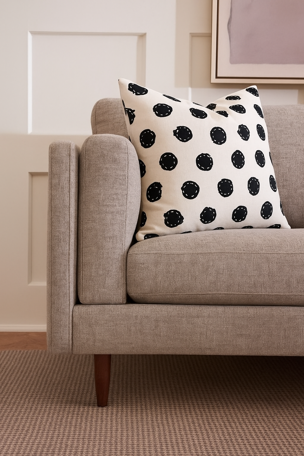 Crafted to complement sofas, armchairs, and cozy corners, the subtle contrast and artistic dot design make it a versatile accent piece—perfect for both everyday comfort and styled spaces.