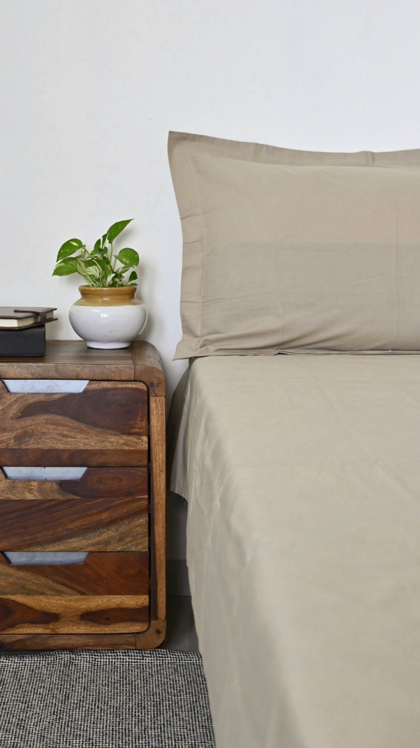 Taupe 100% Cotton Single Flat Bed Sheet with Pillow Cover – 140 TC